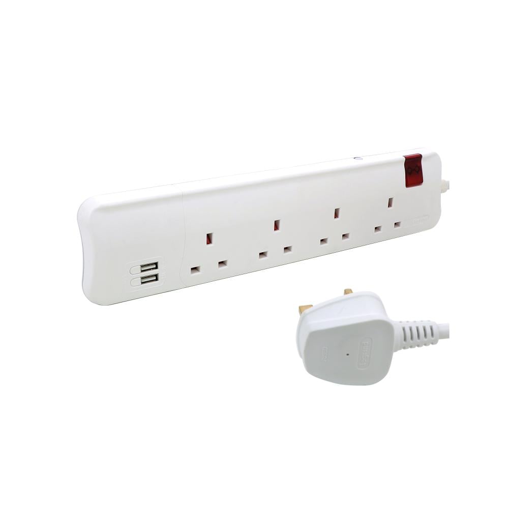 مشترك كهربائى بمعيار بريطاني من ليجراند - 13 امبير - 4 فيش مع 2 منفذ USB - بطول 3 متر - أبيض - 698530