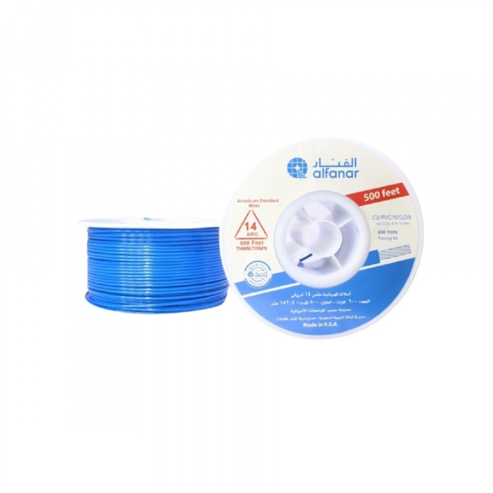 Alfanar Copper Wire - 450/750 V - Coil Length 250 feet - THNN/AWG14/PVC - Blue