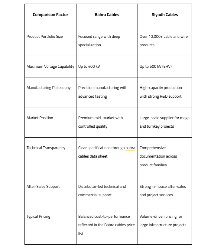 The Bahra cables price list in Saudi Arabia varies based on cable type, voltage rating, conductor material, insulation, and project specifications. Rather than a single fixed rate, pricing is structured to reflect application-specific needs and market conditions.