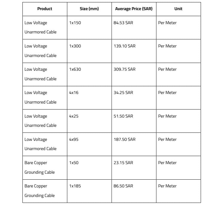 The following table provides a clear overview of the average prices for some of the most sought-after Bahra cables in the Saudi market: