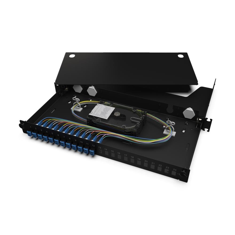 Corning Fiber Patch Panel - 24 Fiber - 1U - Multimode OM3/OM4 - Black - LAN1-24AE-PGTL-B