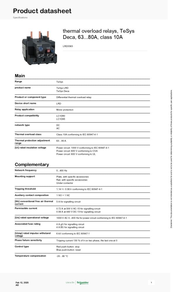 Schneider-Thermal Overload Relay-63/80 A -class 10A-LRD3363